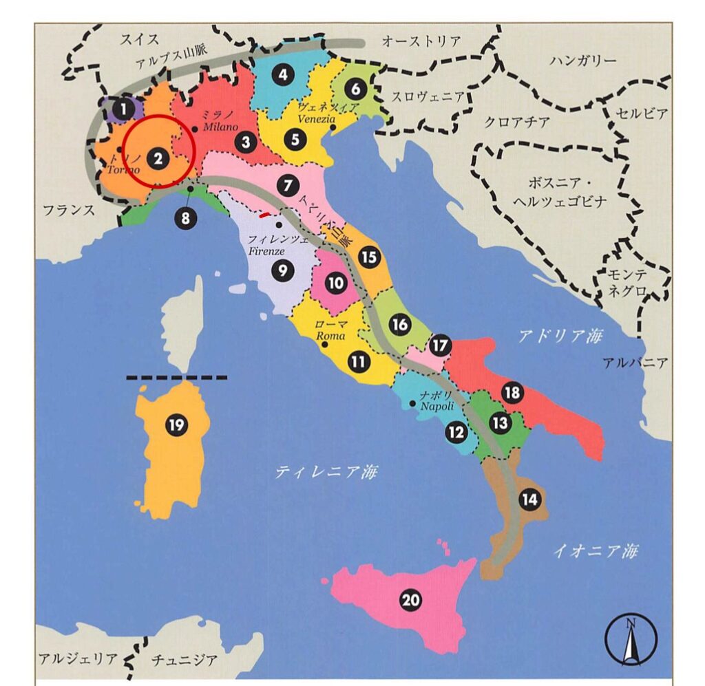 • 州都:トリノ(Torino) — 自動車産業とともに、トスカーナと並ぶイタリア有数の高級ワイン産地。