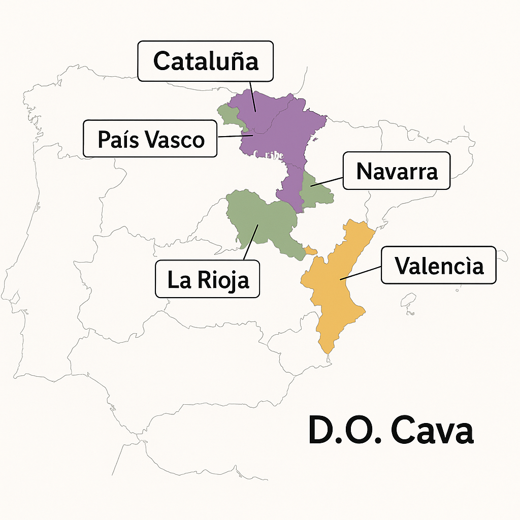 **カバ(Cava)とは、瓶内二次発酵で造られるスペインのスパークリングワインの原産地呼称(D.O.)です。