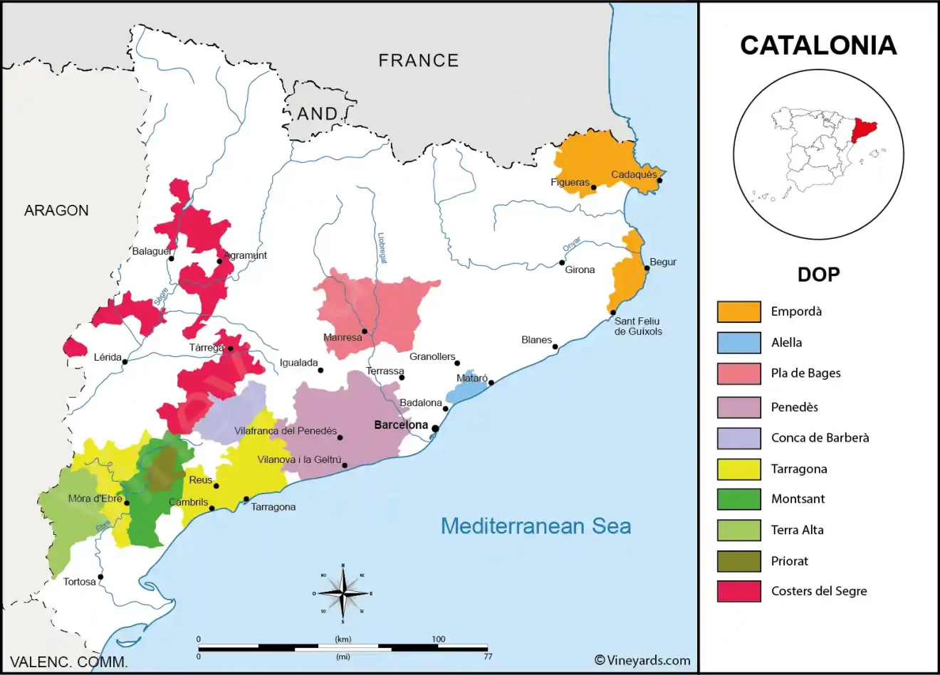 特に**ペネデス地方のサン・サドゥルニ・ダノイア(Sant Sadurní d’Anoia**