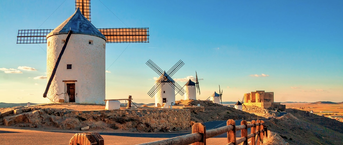 • 風車が並ぶ景観 → 『ドン・キホーテ』の舞台