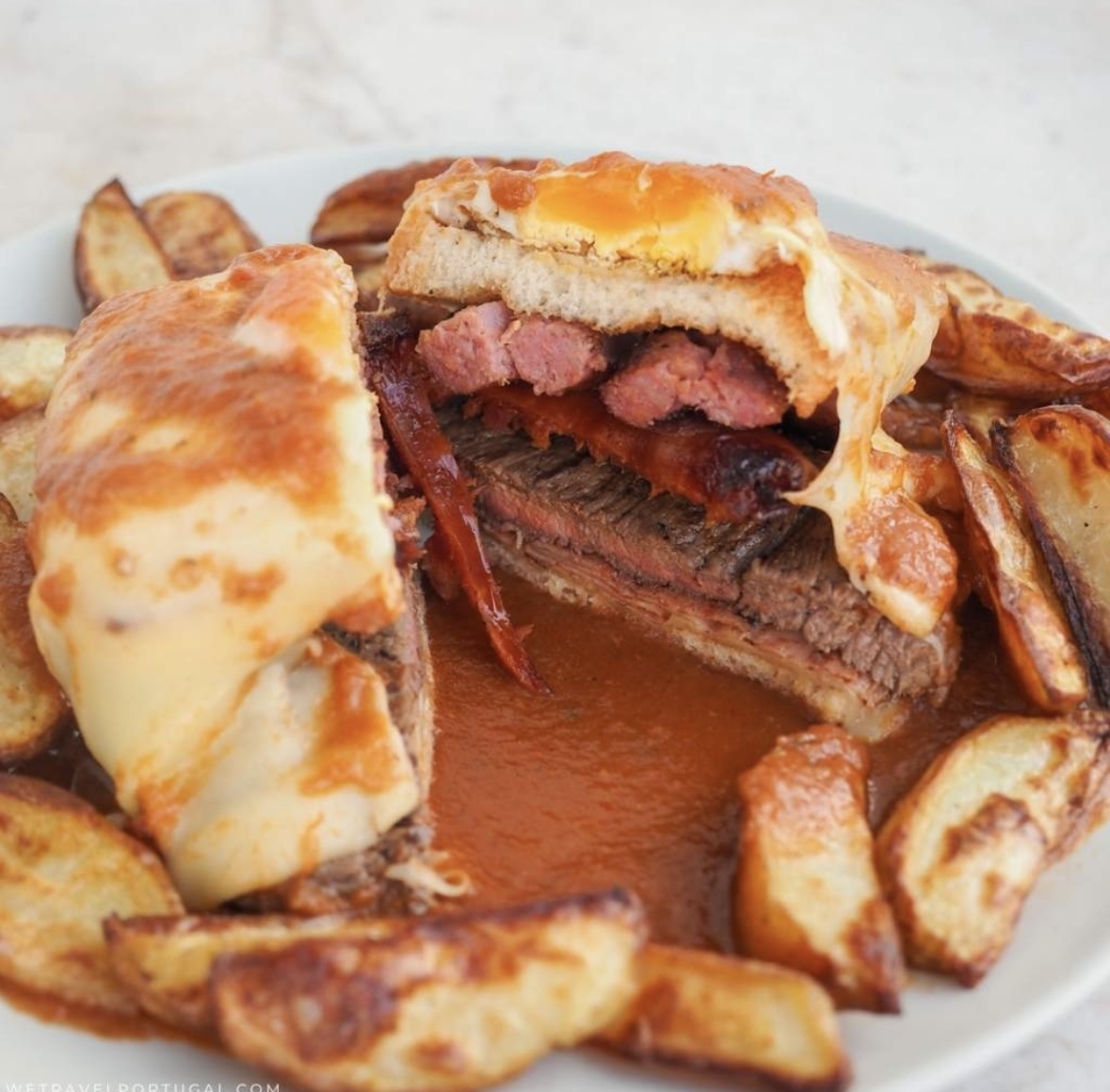 (厚切りパン+肉+腸詰+チーズ+甘口トマトソース)