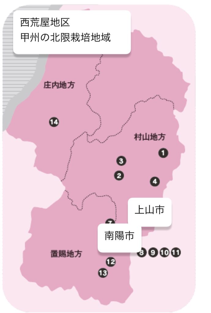 • 主な産地:上山、高畠、西荒谷地区(甲州の北限栽培地)。