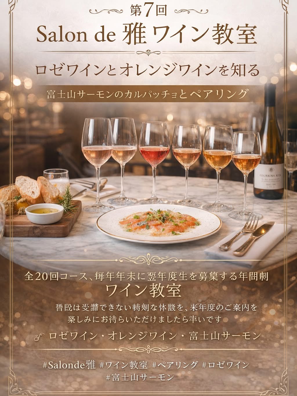 #Salonde雅 #ワイン教室 #ロゼワイン #オレンジワイン #富士山サーモン