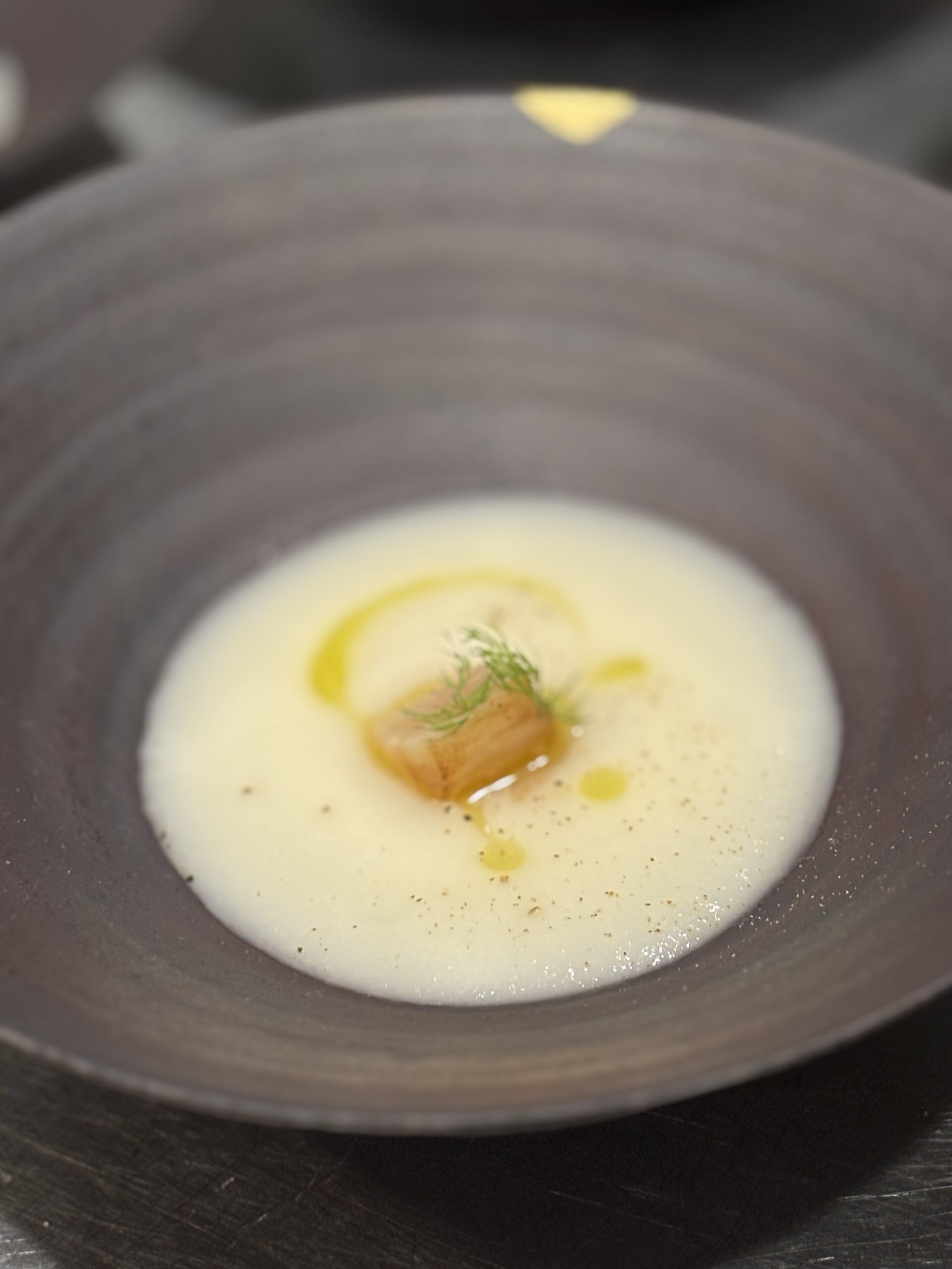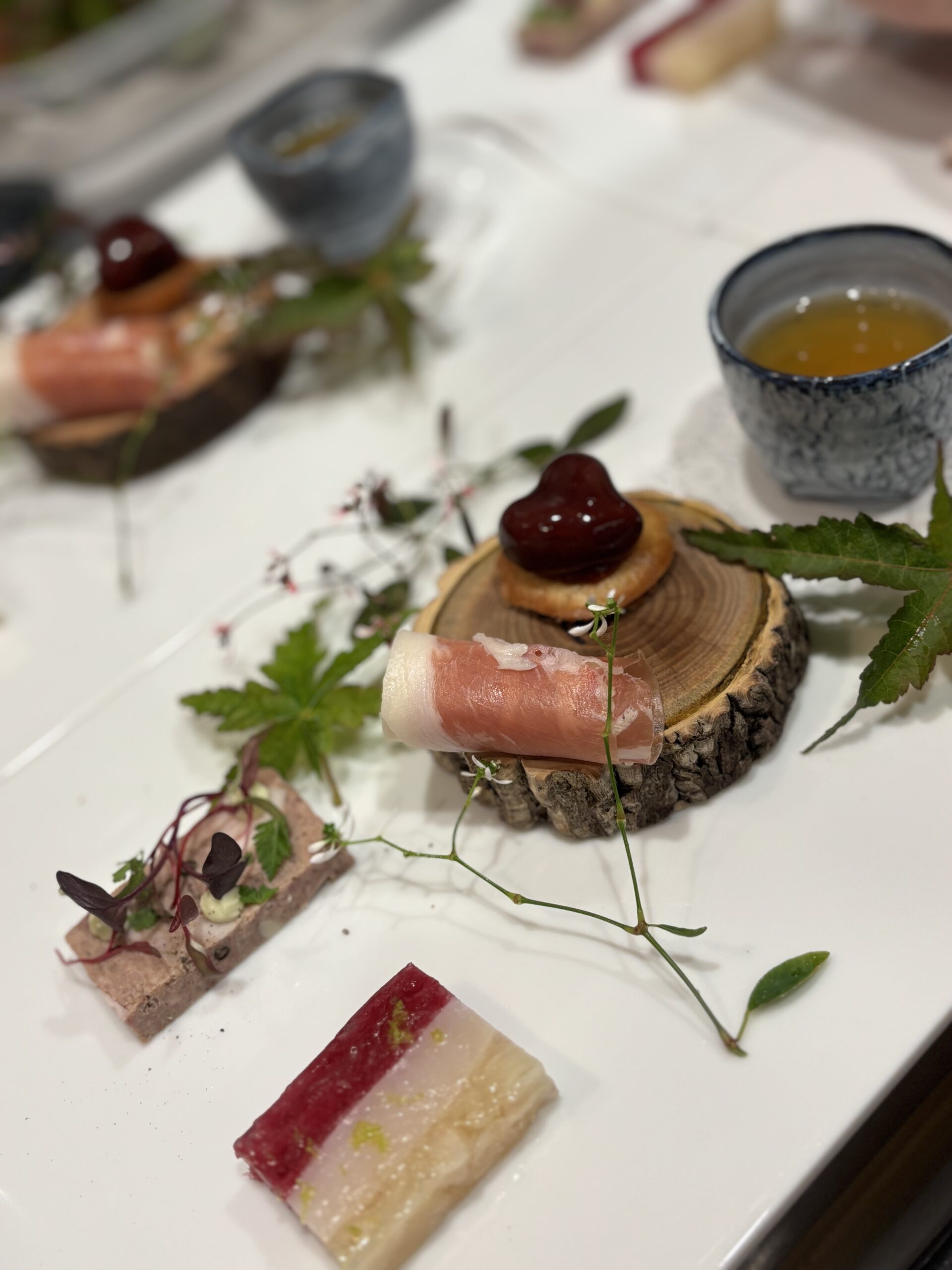 ・梨を、昨年シェフ自ら八ヶ岳に赴き仕込んだ自家製八ヶ岳プロシュートでふんわり巻いた一口